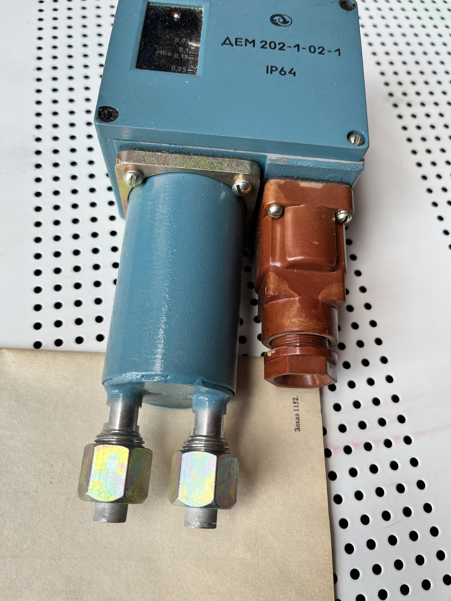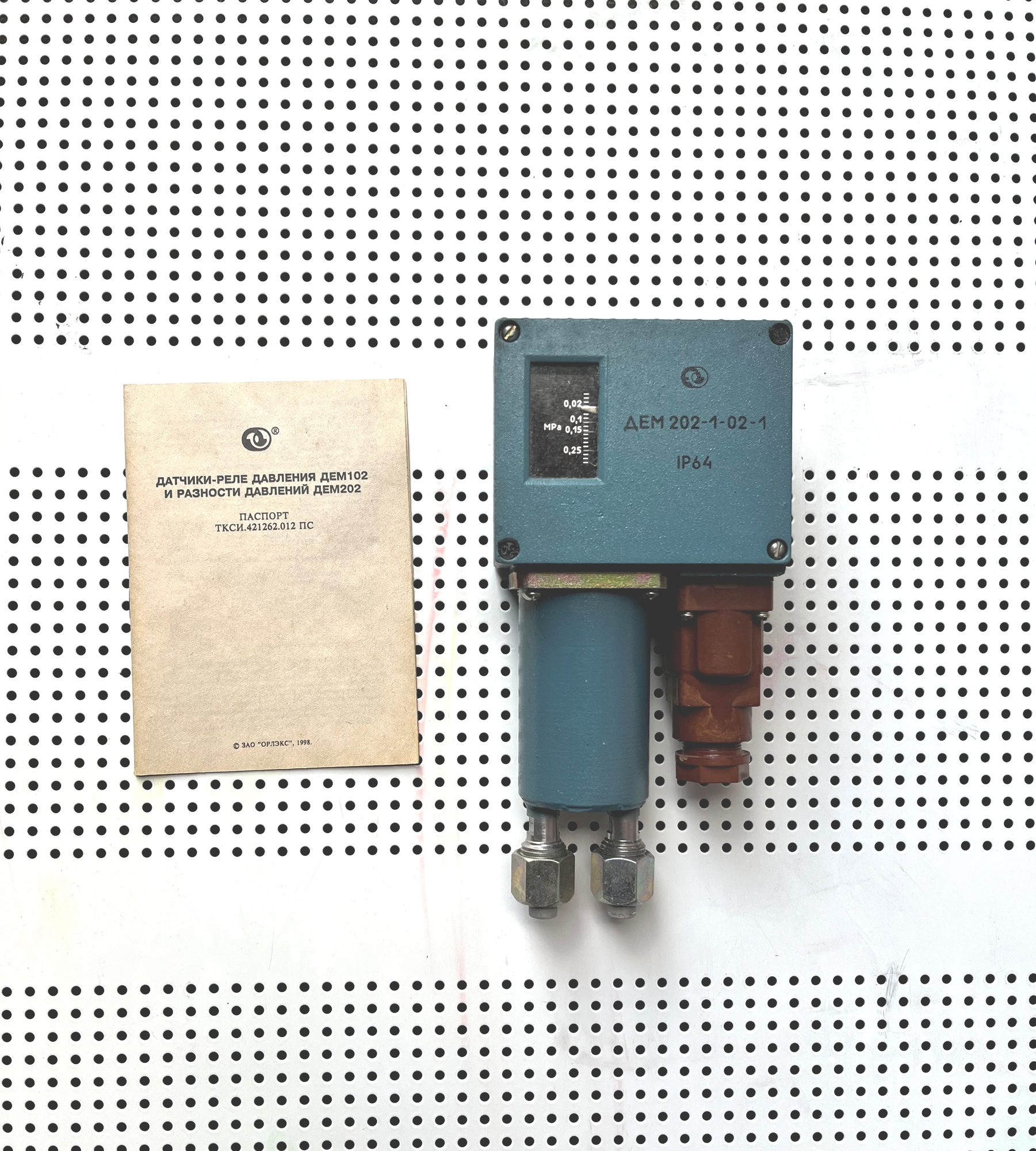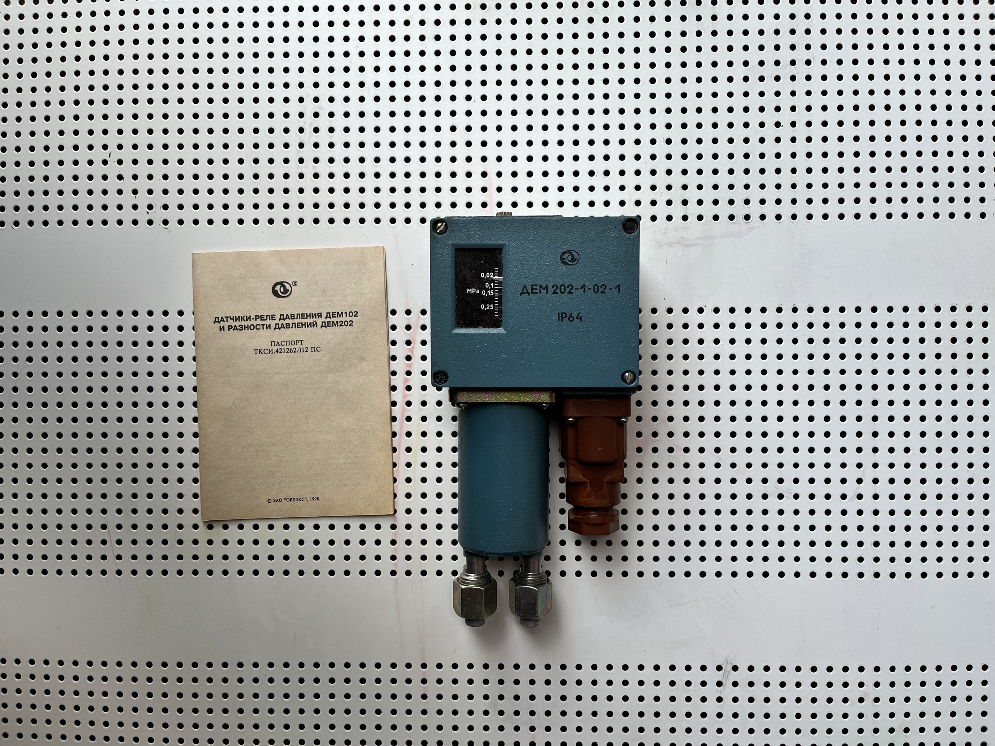 Датчик-реле ДЕМ 202-1-02-1 предназначен для контроля и регулирования разности давлений газообразных и жидких сред в холодильных установках и других системах. Он подходит для неремонтируемого использования, имеет степень защиты корпуса IP64 и может работать с неагрессивными к медным сплавам, стали, фторопластам и прочим средами с вязкостью не более 0,8 Па·с. Максимальное рабочее давление до 2,2 МПа, основная погрешность не более ±0,015, средний срок службы — не менее 12 лет. Коммутируемая мощность до 60 Вт, рассчитан на 250 000 циклов срабатываний. Масса устройства не более 1,1 кг.